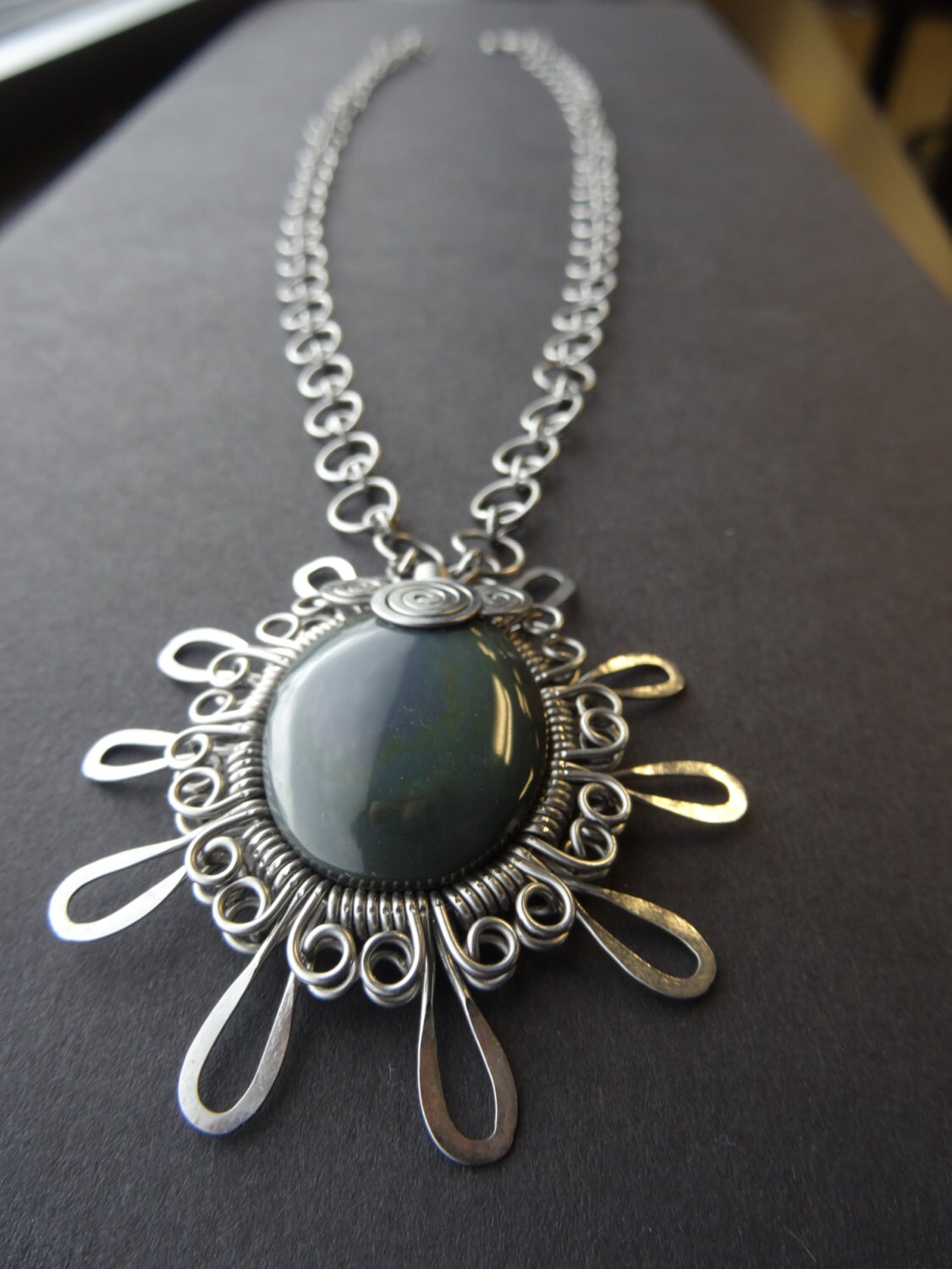 Check out the new item in my Etsy shop, Rainbow Obsidian w/Filigree & Hammered Stainless Steel Statement Necklace. etsy.com//listing/20851…