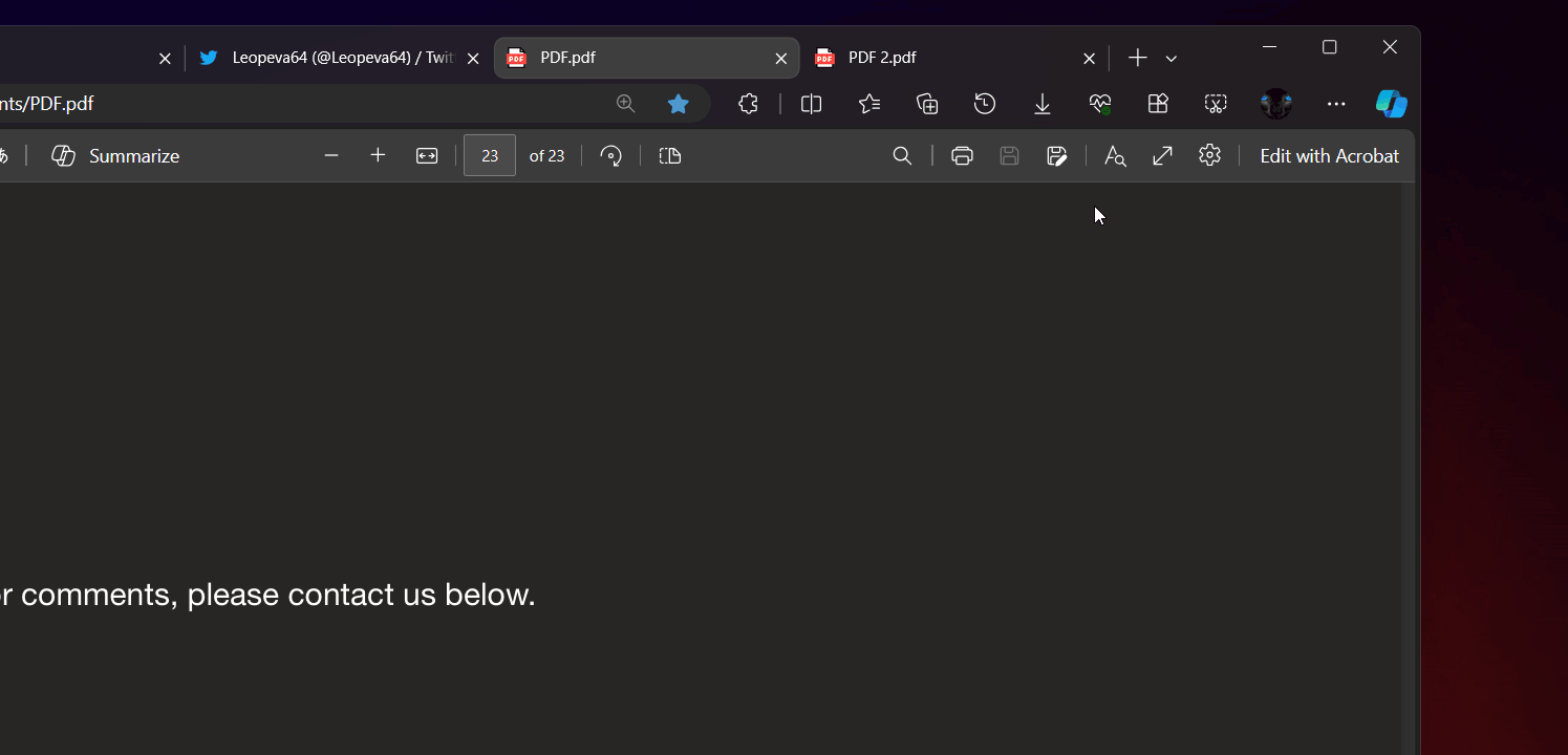 It looks like the "Ask Copilot" button in Edge's PDF reader toolbar will be replaced by a "Summarize" button: twitter.com/Leopeva64/stat…