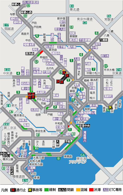 B 湾岸線東行き 浮島で入口閉鎖 22:00発表
